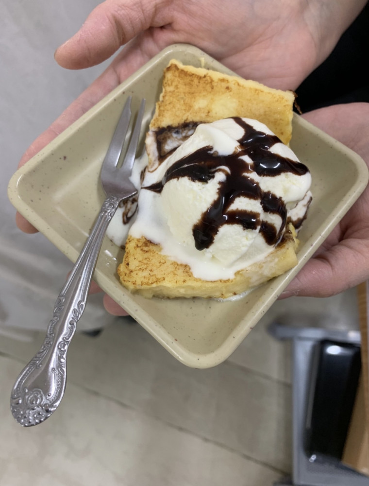 手作りおやつでは、アイスが乗ったフレンチトーストを提供しました🍨